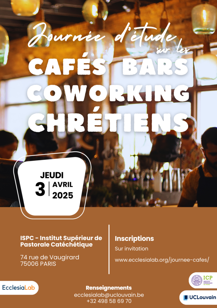 La cartographie des lieux innovants et inspirants réalisée par l’EcclesiaLab a permis de mettre en carte une cinquantaine de projets de type cafés, bars et espaces de coworking chrétiens en Europe francophone. Il s’agit sans nul doute d’un signe de vitalité chrétienne qui mérite que l’on s’y intéresse. Plus encore, il y a lieu de réfléchir à la spécificité chrétienne de ces projets et aux divers enjeux qui s’y rattachent. Pour cette raison, l’EcclesiaLab organise le jeudi 3 avril 2025 à l’Institut catholique de Paris (ICP), une journée d’étude consacrée au thème : « Cafés, pubs/bars et espaces de coworking chrétiens : des lieux d’évangélisation ? ».